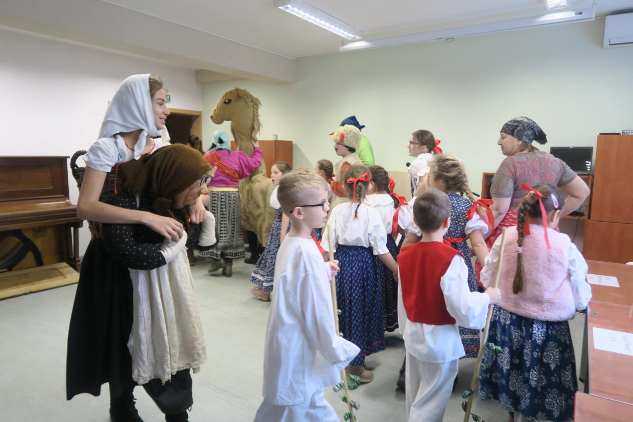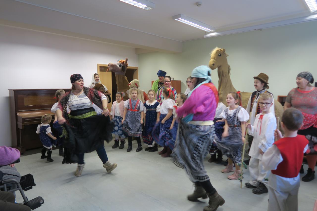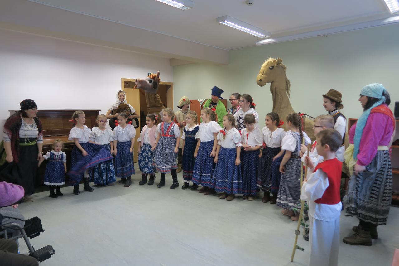 Tento krásny čas nám prišiel spríjemniť i ľudový súbor Zvončeky, ktorý nám so svojimi detičkami zatancoval i zahral na ľudovú nôtu.